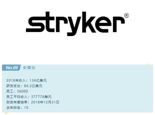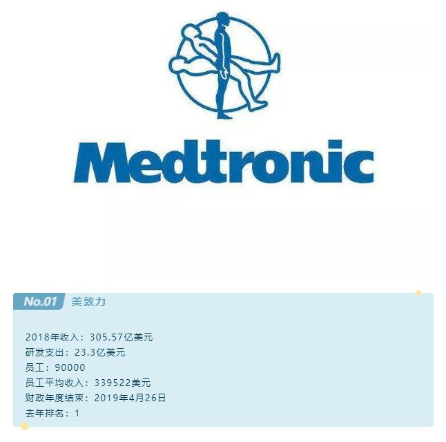 以下是2019年全球十大醫(yī)療器械公司名單。值得注意的是,除了排名前三的美敦力、強生、飛利浦、第八的丹納赫,10強的其余排名均發(fā)生變化。
