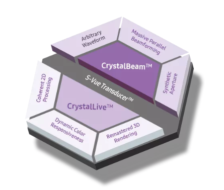 Hera i 10繼承并升級(jí)了全球首款5D超聲“三星麥迪遜WS80A”的“晶體結(jié)構(gòu)”成像理念,即將CrystalBeam?波束形成技術(shù)、CrystalLive?超聲成像引擎、S-Vue Transducer?視覺(jué)傳感器集于一身,提供更清晰的圖像。