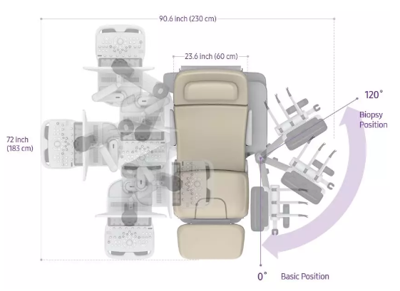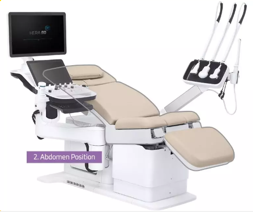 Hera i 10明顯區(qū)別于其他同類(lèi)設(shè)備的亮點(diǎn)是安裝于顯示器右側(cè)的可調(diào)節(jié)座椅,最大尺寸長(zhǎng)度為7.5英尺(230厘米)x寬6英尺(183厘米)x高度5.7英尺(175厘米)。座椅可通過(guò)機(jī)械控制,自動(dòng)調(diào)整角度來(lái)配合醫(yī)生檢查和優(yōu)化患者就診體驗(yàn)。