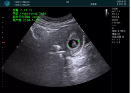 清晰顯示孕囊,通過軟件包計(jì)算孕齡7w+6d