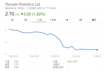 ReWalk公司于2014年9月在納斯達(dá)克上市,上市第一個(gè)月受到了市場(chǎng)追捧,股價(jià)創(chuàng)新高,最高超過30美元,較發(fā)行價(jià)上漲超過3倍,動(dòng)態(tài)PS達(dá)到80倍。但由于持續(xù)大額的虧損以及遲遲打不開市場(chǎng),之后股價(jià)就開始一路下挫。