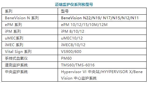 邁瑞的監(jiān)護儀系列包括BeneVision N系列、ePM系列、iPM系列、uMEC系列、iMEC系列、Vital Sign系列、遙測系列以及中央監(jiān)護站和手持式血氧儀。