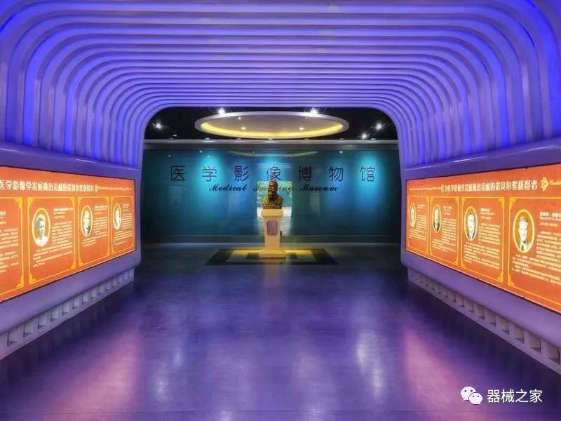 博物館序廳走廊兩側是為醫(yī)學影像做出突出貢獻的十位諾貝爾獎獲得者簡介,走廊中央是發(fā)現(xiàn)X射線并因此獲得首屆諾貝爾的德國科學家倫琴。