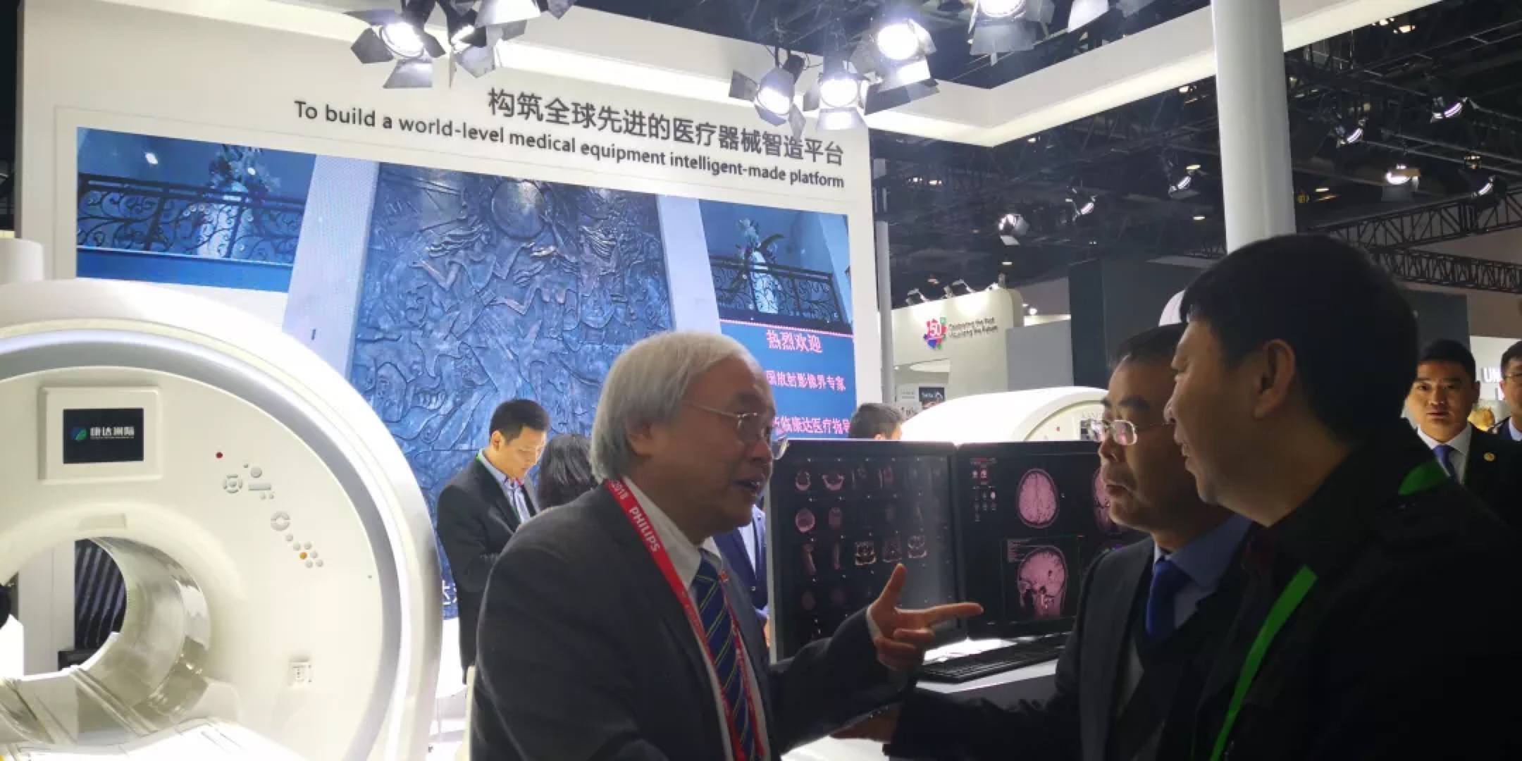 中國放射學家、中華醫(yī)學會放射學分會主任委員、北京協(xié)和醫(yī)院放射科主任金征宇一行也特意來到了康達洲際展臺。金征宇教授在聽取了康達的工作人員對康達洲際1.5T磁共振等一系列產(chǎn)品的介紹后,對康達洲際在產(chǎn)品的研發(fā)和創(chuàng)新上給予了高度肯定。