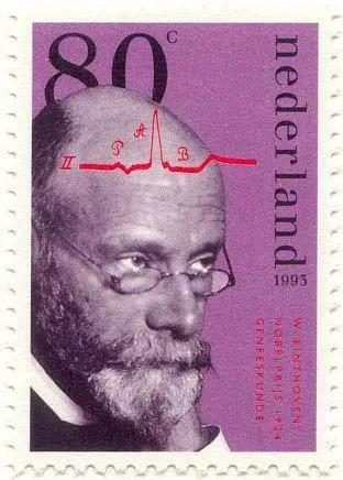 1913年,提出著名的“Einthoven三角”理論,同年創(chuàng)立心電圖標準雙極肢體導聯(lián)記錄系統(tǒng)。