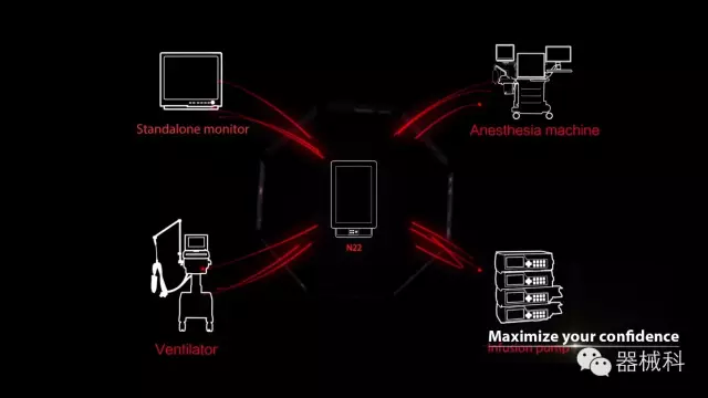 在N22監(jiān)護(hù)儀上可以查看其它相關(guān)設(shè)備的信息,這是大物聯(lián)網(wǎng)的前奏啊(對“萬物互聯(lián)”感興趣的童鞋們還可以在網(wǎng)上圍觀一下OMAHA——開放醫(yī)療與健康聯(lián)盟的最新進(jìn)展......)!但是現(xiàn)在的形式很難讓臨床科室在信息采集和處理中以床旁監(jiān)護(hù)為中心,后面會講到。