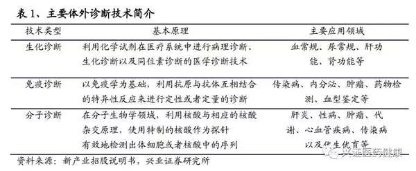 體外診斷主要分為生化診斷、免疫診斷、分子診斷、微生物診斷、凝血類診斷、組織診斷、尿液診斷、血液學(xué)和流式細(xì)胞診斷等,其中,生化診斷、免疫診斷、分子診斷是目前國內(nèi)醫(yī)療機(jī)構(gòu)的主流IVD方式。