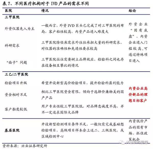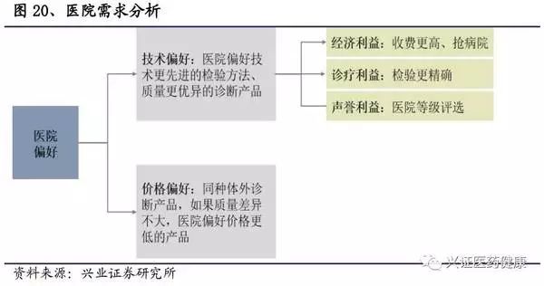 在進(jìn)口替代的進(jìn)程中,應(yīng)先分析終端的需求情況,以找準(zhǔn)定位,獲得收益。醫(yī)院在選用儀器的時候,主要有技術(shù)偏好和價格偏好,不同級別的醫(yī)院考慮的優(yōu)先度會有所不同,所以對其分類討論以找準(zhǔn)市場至關(guān)重要。