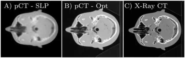 科研人員將質(zhì)子CT圖像與傳統(tǒng)X線CT圖像進行了比較。盡管質(zhì)子CT圖像比X線CT圖像模糊,但能夠清晰顯示質(zhì)子與組織之間的相互作用。當(dāng)前質(zhì)子治療過程中,質(zhì)子照射范圍和準確性都存在不確定性。如果使用X線CT圖像進行治療計劃制定,那么束流實際到達和釋放能量的位置會與計劃有3-5%的差異,從而損傷正常細胞;而使用質(zhì)子CT,上述誤差可以降低到1%。