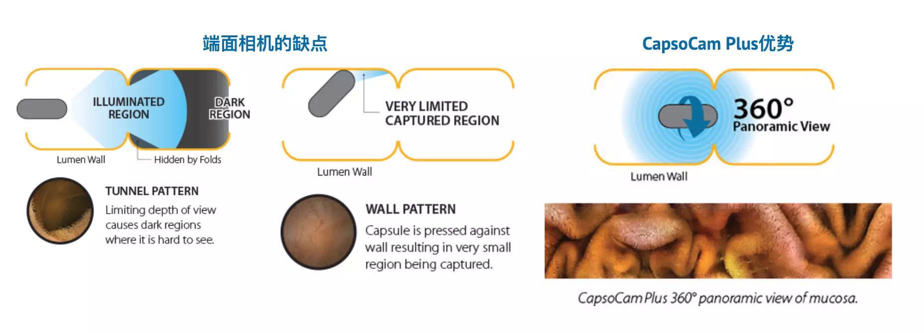 CapsoCam Plus旨在通過提供小腸粘膜的360o全景側(cè)視圖來提高診斷信心。更精細(xì)的成像和更大的垂直視野允許比前幾代CapsoCam更好的組織表征。